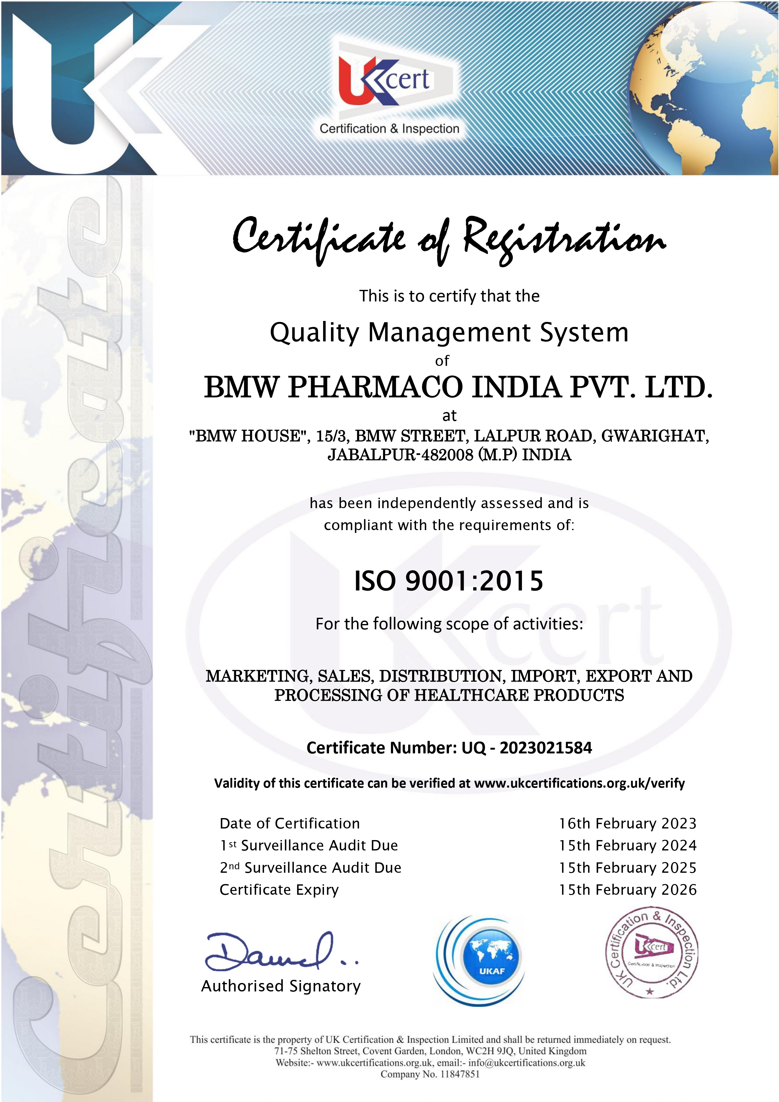 At BMW Pharmaco India Pvt. Ltd., we are committed to maintaining the highest quality standards in pharmaceutical marketing and distribution. Our certifications reflect our dedication to excellence, safety, and compliance with global industry norms. We are proud to hold the following certifications: