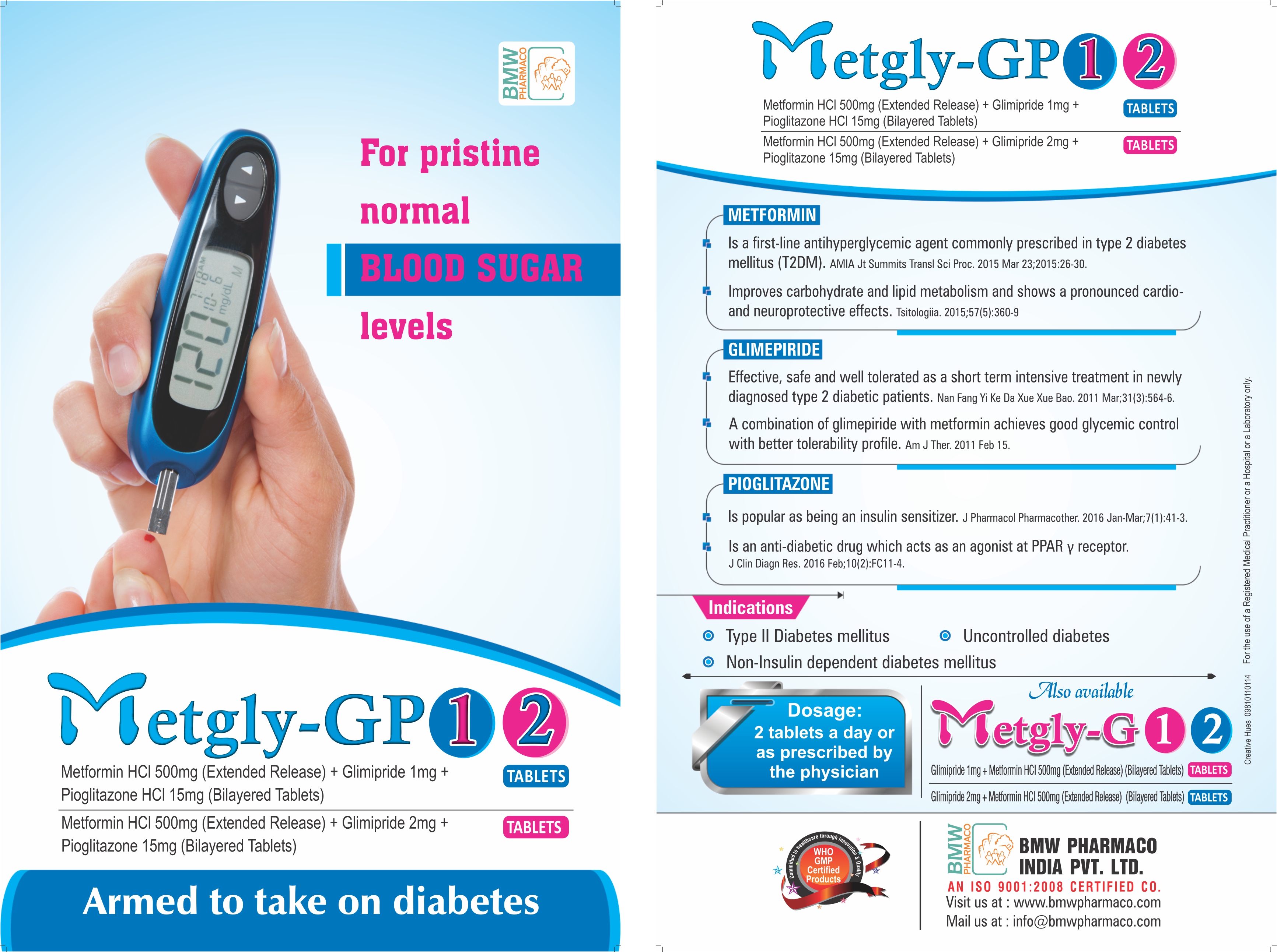 Voglibose 0.2 mg + Metformin Hydrochloride 500 mg (Sustained Release) + Glimepiride 1 mg (Bilayered) |