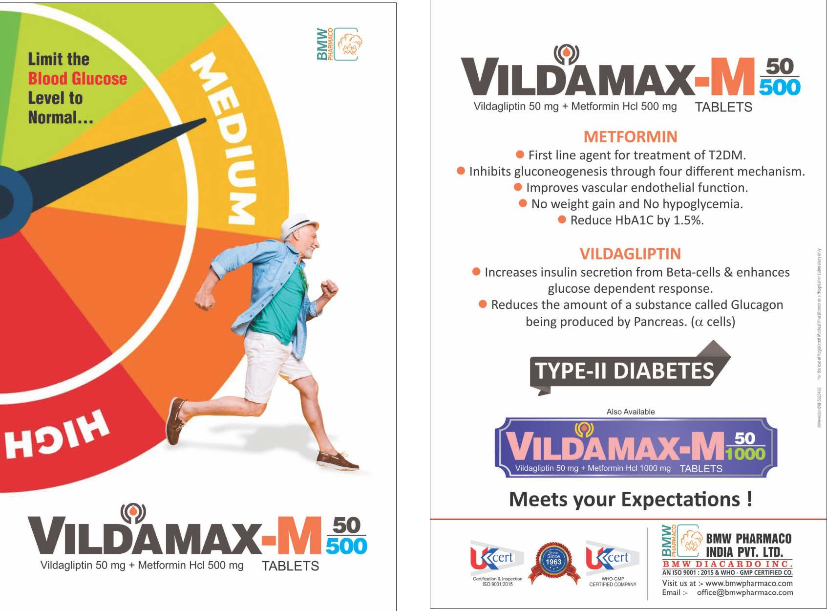 Vildagliptin 50 mg + Metformin Hydrochloride 500 mg |