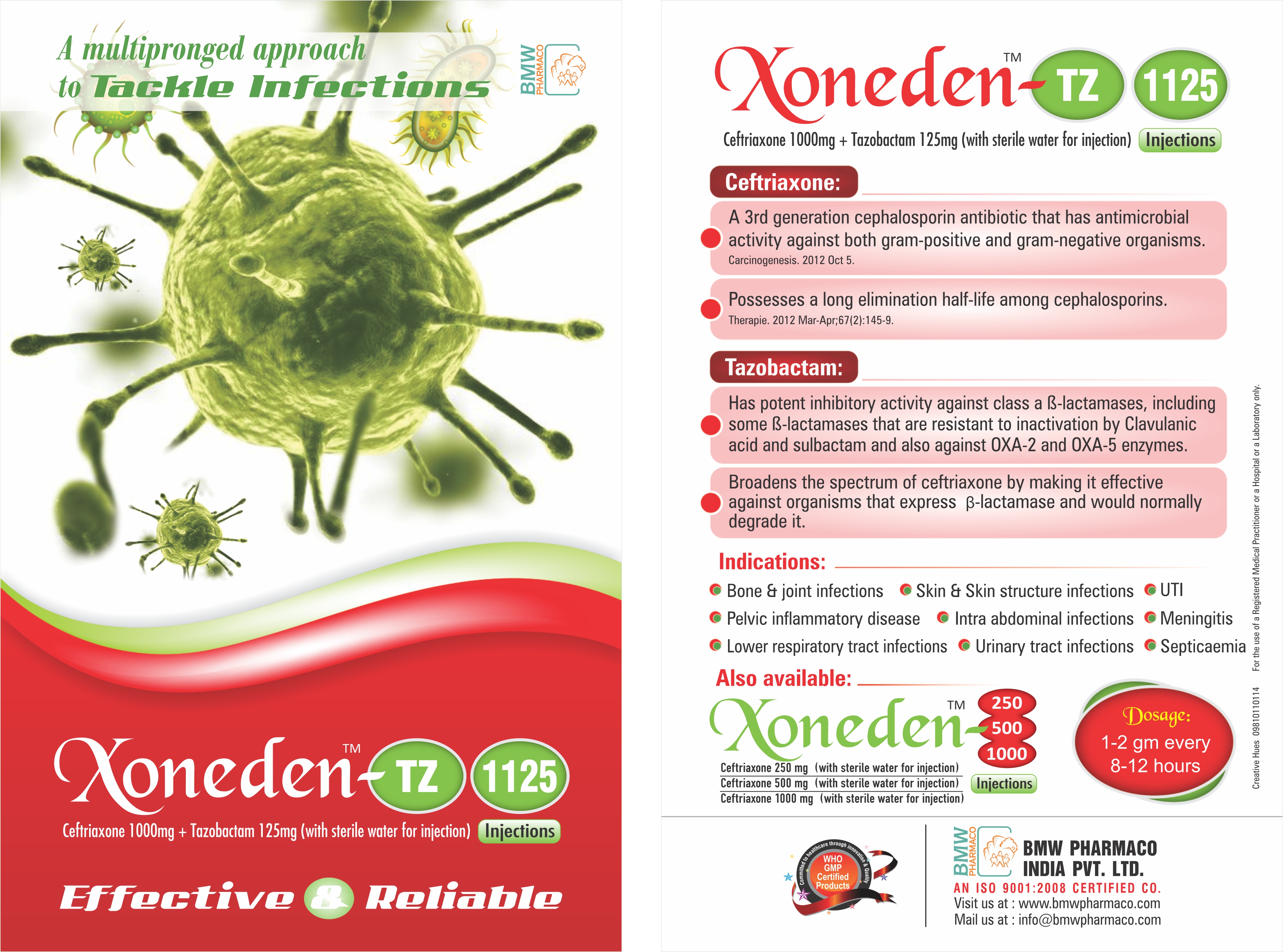 Ceftriaxone 1000 mg + Tazobactam 125 mg |