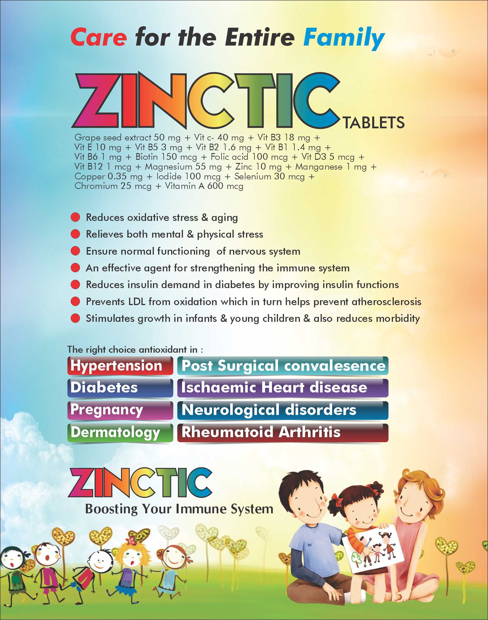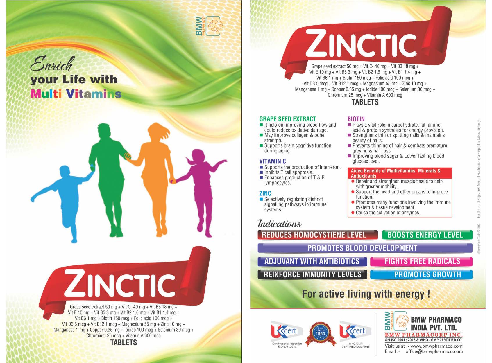 Vitamin A 600 mcg + Vitamin E 10 mg + Vitamin C 40 mg + Vitamin B1 1.2 mg + Vitamin B3 16 mg + Vitamin B5 4.5 mg + Vitamin B12 1 mcg + Vitamin B6 1.2 mg + Vitamin B2 1.4 mg Methylcobalamin 1 mcg + Zinc oxide 10 mg + Copper Gluconate 0.9 mg + Folic acid 100 mcg + Sodium Selenium 55 mcg + Manganese Chloride 2 mg |