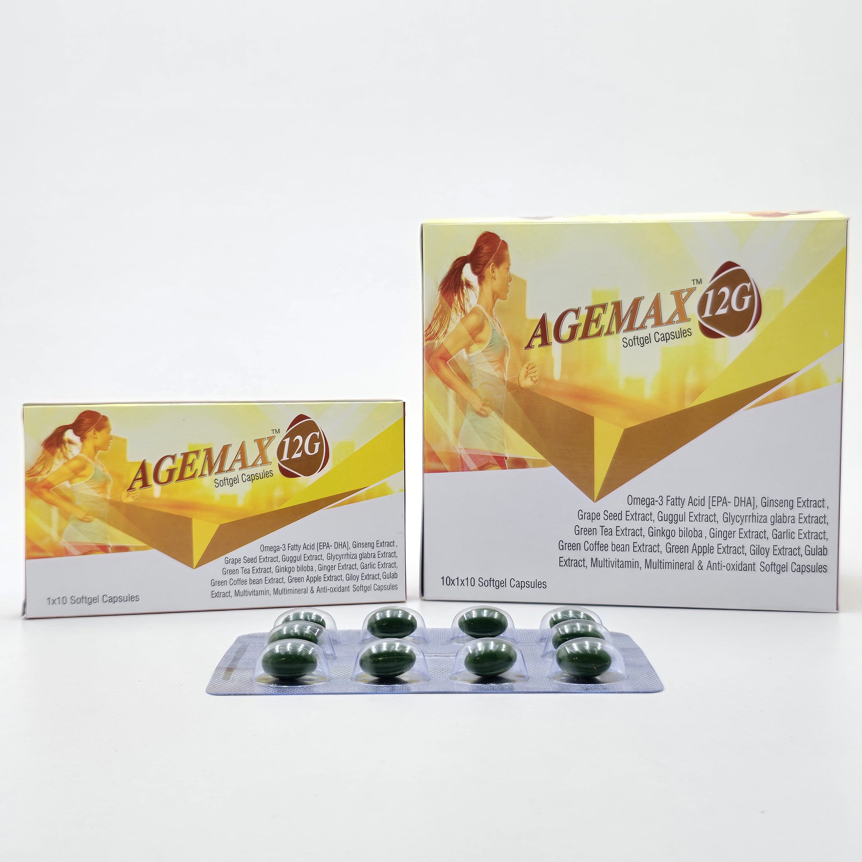 Omega-3 fatty acid Providing Eicosapentaenoic Acid(EPA) 90 mg + Docosa Hexaenoic Acid (DHA) 60 mg + Green tea extract eq. to polyphenols 10 mg + Ginseng extract 42.5 mg + Ginkgo biloba extract 10 mg + Grape seed extract 15 mg + Garlic Extract 20 mg + Guggul extract 10 mg + Lactic Acid Bacillus 500 lac + Citrus Bioflavonoids 20 mg + Natural Mixed Caroteboids (10%) 11 mg + Vitamin D3 200 I.U. + Wheat Germ Oil 25 mg + Menadione Sodium Bisulphate (Vit - k) 10 mcg + Benfothiamine 1.5 mg + Vitamin B6 1 mg + Vitamin B12 (Cyanocobalamin) 1 mcg + Niacinamide 20 mg + Calciumm Ascorbate 45 mg + Folic Acid 150 mcg + Biotin 100 mcg + Choline Bitartrate 25 mg + Lutein (6%) 250 mcg + Piperine 5 mg + Dibasic Calcium Phosphate Eq. To El. Calcium 20 mg + Eq. To El. Phosphorus 15.45 mg + Ferrous Fumarate 15 mg + Zinc Oxide Eq. To El. Zinc 13 mg + Potassium Iodide Eq. To El. Iodine 150 mcg + Magnesium Oxide Eq. To El. Maganese 1.5 mg + Copper Sulphate Eq. To El. Copper 0.5 mg + Chromium Chloride Eq. To El. Chromium 45 mcg + Sodium Molybdate Eq. To El. Molybdneum 25 mcg + Potassium Chloride Eq. To El. Chlorine 4 mg + Sodium Selenate Eq. To El. Selenium 20 mcg + Sodium Borate Eq. To El. Boron 150 mcg + Sodium Meta Vandate Eq. To El. Vanadium 10 mcg + Nickel Sulphate Eq. To El. Nickel 5 mcg + Stanous Chloride Dihydrate Eq. To El. Tin 10 mcg + Colloidal Siticon Dioxide 2 mcg. (SOFT GEL) |