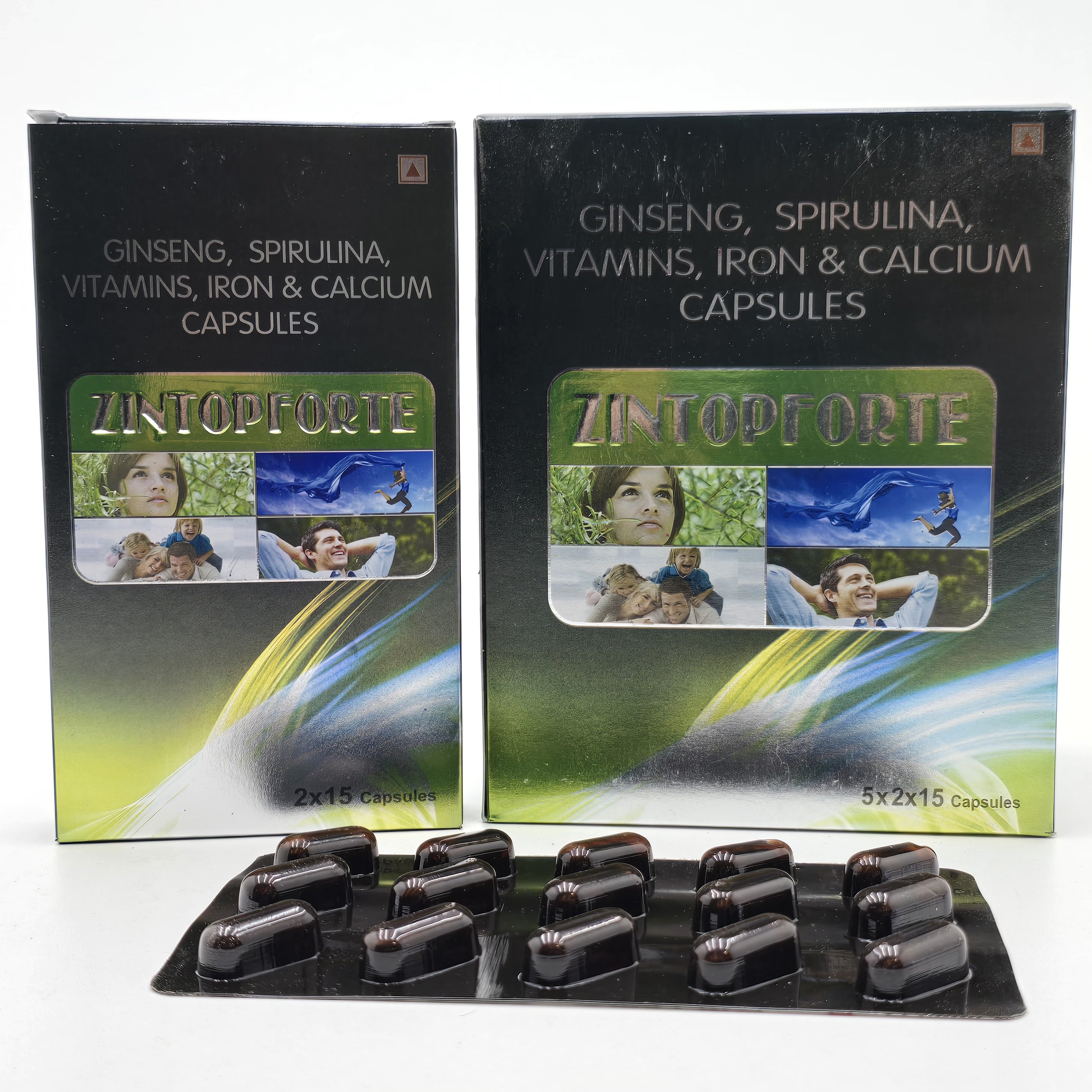 Ginseng Extract Powder 42.5 mg + Vitamin A (As Acetate) 5000 I.U. + Vitamin C 50 mg + Vitamin E 5 mg + Vitamin B12 1 mcg + Vitamin B2 1.5 mg + Vitamin B1 1 mg + Vitamin B6 1 mg + Vitamin D3 200 I.U.+ Niacinamide 10 mg + Ferrous Fumarate 30 mg + Calcium Pantothenate 5 mg + Folic Acid 0.15 mg + Copper 0.5 mg + Magnesium 3 mg + Spirulina 50 mg + Manganese 0.5 mg + Iodine 0.1 mg + Zinc Sulphate 10 mg + Selenium 30 mcg + Dibasic Calcium Phosphate 75 mg. |