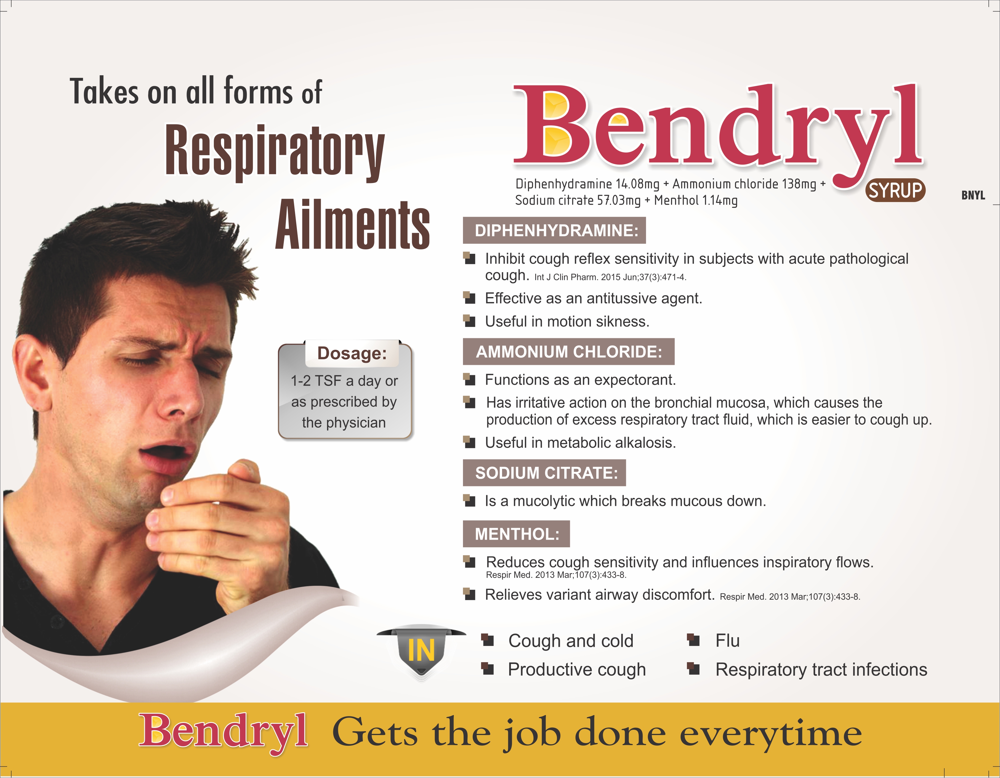 Bromhexine 4 mg + Terbutaline Sulphate 1.25 mg + Guaiphenesin 50 mg + Menthol 1 mg / 5ml |