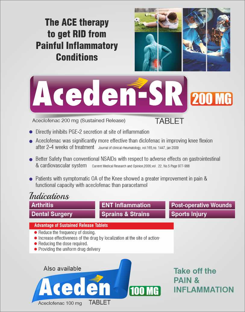 Aceclofenac 200 mg (As Sustained Release Pellets) + Rabeprazole 20 mg (As Enteric Coated Pellets) |