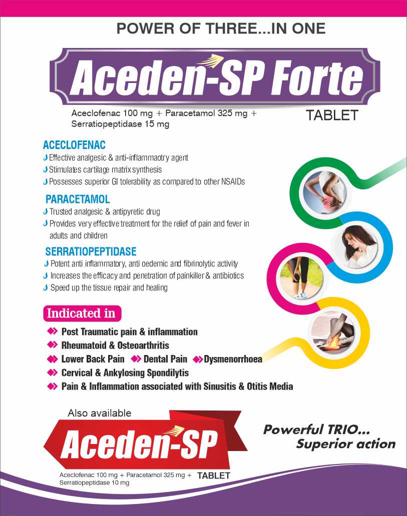 Aceclofenac 100 mg + Paracetamol 325 mg + Serratiopeptidase 10 mg |