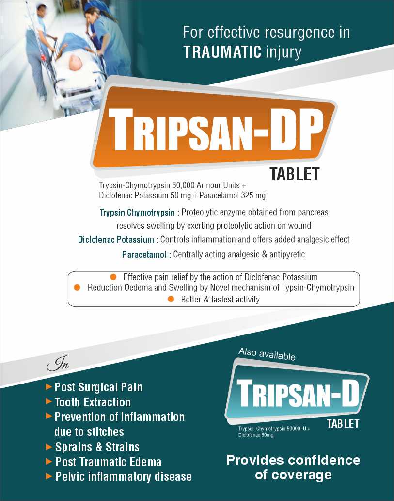 Trypsin-Chymotrypsin 50,000 Armour Units + Diclofenac Potassium 50 mg + Paracetamol 325 mg |